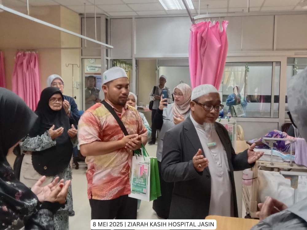 Hospital Jasin telah menerima kunjungan ziarah kasih dari Ahli Parlimen Jasin YB Tuan Guru Zulkifli bin Ismail dan Dr Rosni binti Adam, NGO Pertubuhan Kami Prihatin Malaysia (PKPM) untuk menyantuni pesakit-pesakit di Hospital Jasin. Kunjungan mereka dengan menyapa mesra serta membawa doa, kata-kata semangat dan sedikit buah tangan bagi menyapa hati-hati yang sedang diuji dengan sakit dan kesepian seperti sabda Nabi ﷺ :