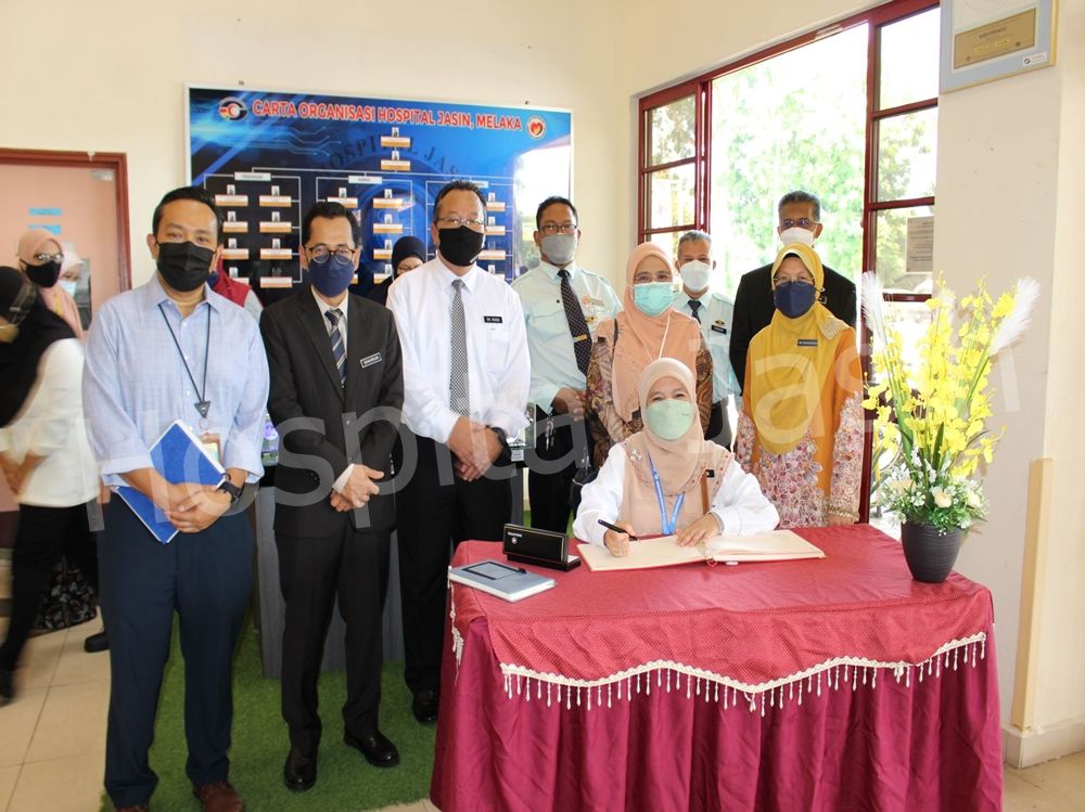 YBhg Dato’ Dr. Asmayani binti Khalib, Timbalan Ketua Pengarah Kesihatan (Perubatan) Kementerian Kesihatan Malaysia telah mengadakan lawatan kerja ke Hospital Kluster Melaka pada 12 April 2022 bermula dengan lawatan ke Lead Hospital iaitu Hospital Melaka dan seterusnya ke Non Lead Hospital iaitu Hospital Jasin dan Hospital Alor Gajah.
