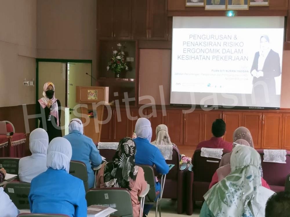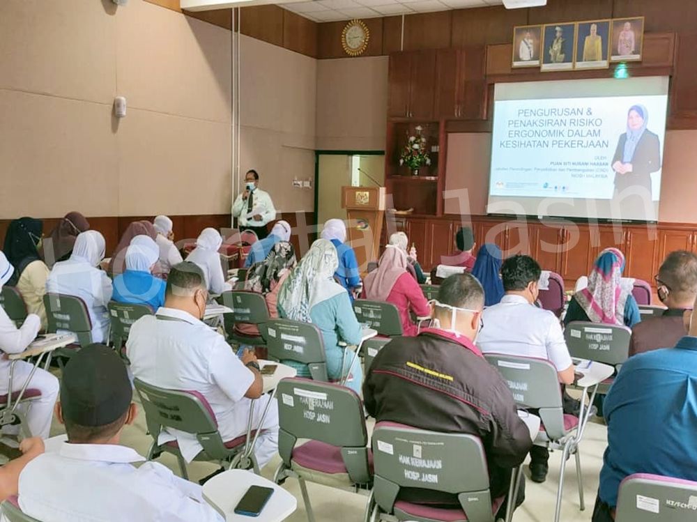 Jawatankuasa Keselamatan & Kesihatan Pekerjaan (JKKP) Hospital Jasin telah mengadakan CME bertajuk Pengurusan & Penaksiran Risiko Ergonomik Dalam Kesihatan Pekerjaan pada 8 Jun 2022 (Rabu) dari jam 2.30 petang hingga 4.30 petang di Dewan Merak Kayangan, Hospital Jasin dan dihadiri oleh 40 orang peserta.