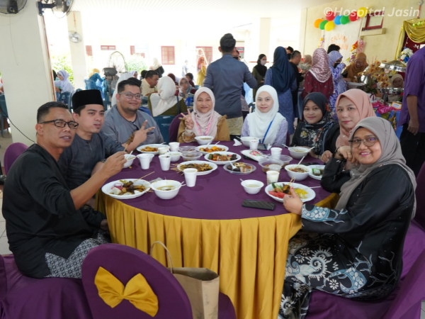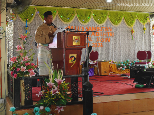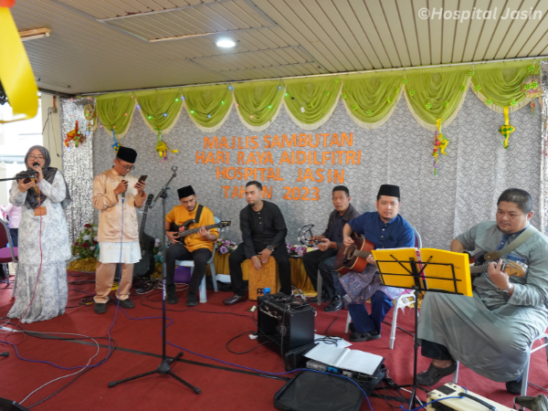 Hospital Jasin telah mengadakan majlis Sambutan Hari Raya Aidil Fitri pada 19 Mei 2023 bertempat di Dataran Ilmu. Pelbagai juadah hidangan hari raya telah disediakan oleh gerai-gerai dari unit-unit dan diserikan lagi dengan persembahan muzik oleh Kugiran Rumah Sakit. Terima kasih diucapkan kepada pihak penganjur dan urusetia yang telah berjaya menganjurkan majlis ini dengan meriah sekali.