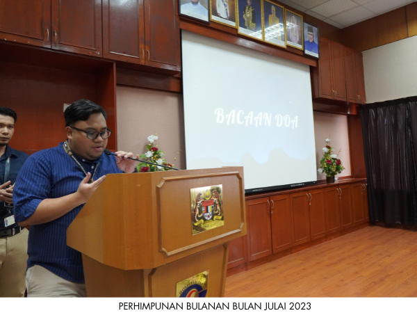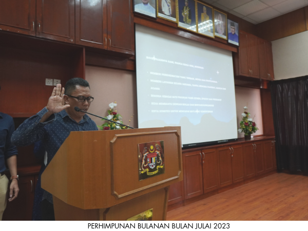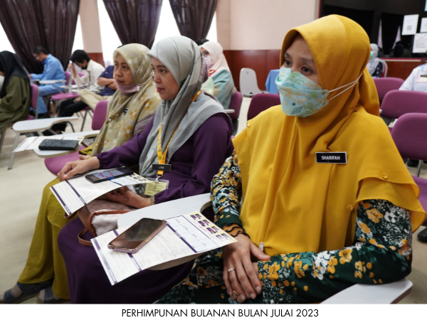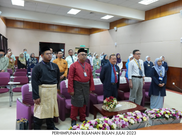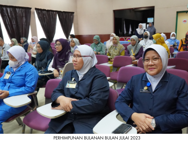 Perhimpunan Bulanan Bulan Julai 2023 telah dianjurkan oleh Unit Rehabilitasi pada 21 Julai 2023 bertempat di Dewan Merak Kayangan, Hospital Jasin. Majlis turut diserikan dengan Taklimat Zakat Harta dari Pusat Zakat Melaka.