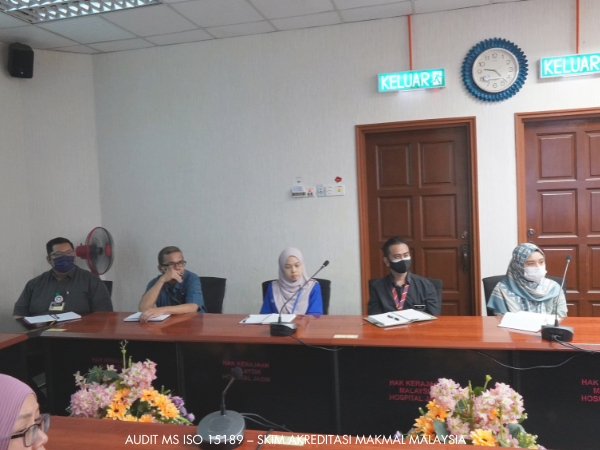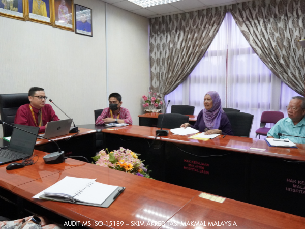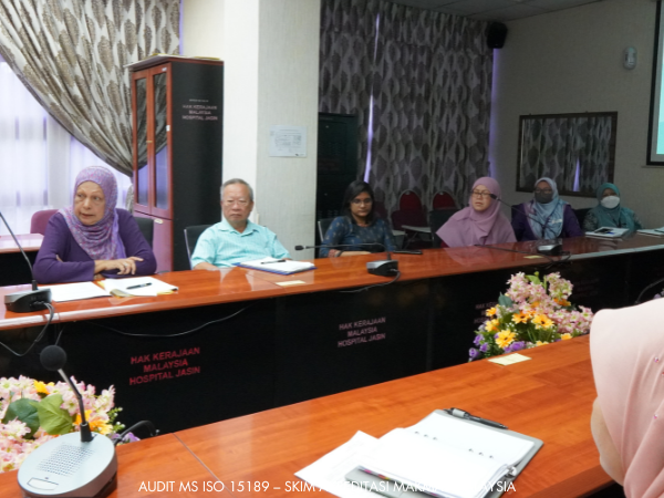 Pasukan Auditor dari Jabatan Standard Malaysia yang terdiri dari YBhg. Dato’ Dr Halimah Bee Yahaya sebagai Ketua Pasukan dengan dibantu oleh En. Sin Ka Soon, Dr Rashidah binti Mohamed serta Pn. Sharmila A/P Veerasamy telah menjalankan pengauditan bagi Audit MS ISO 15189 – Skim Akreditasi Makmal Malaysia di Hospital Jasin pada 24 hingga 26 Julai 2023.