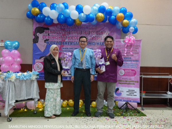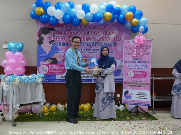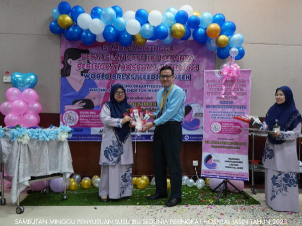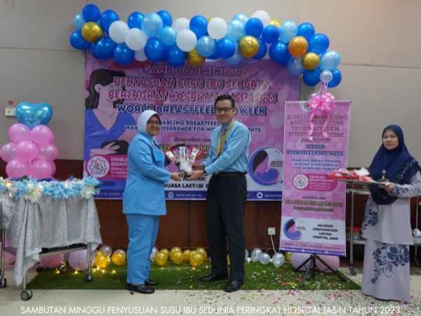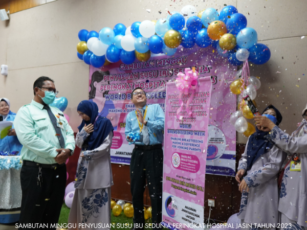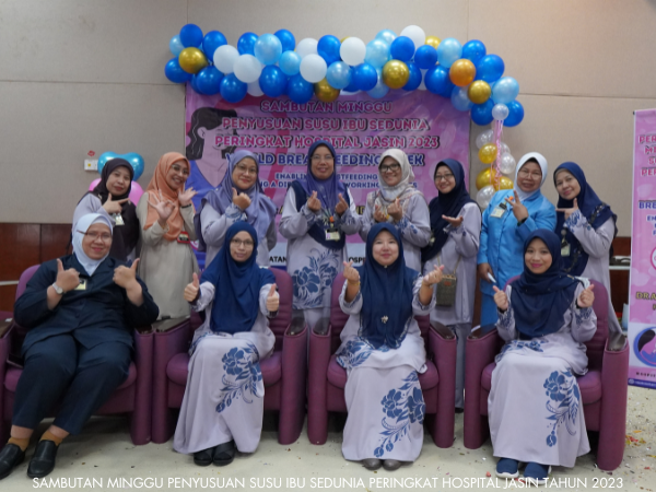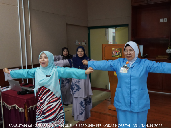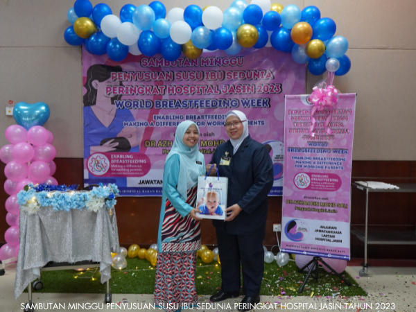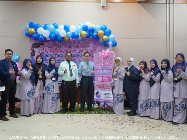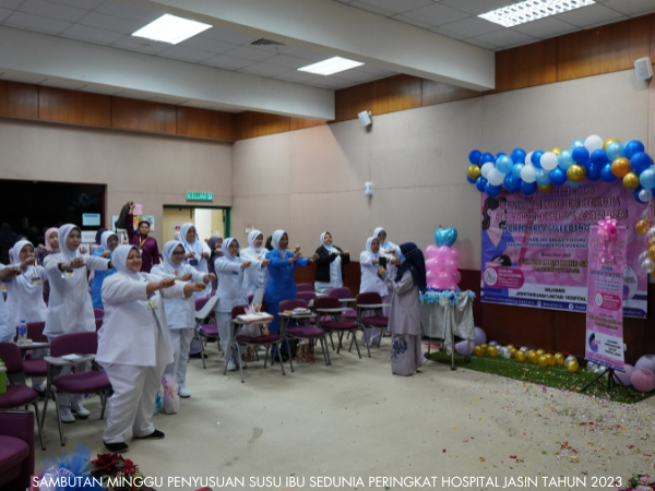 Unit Kejururawatan Hospital Jasin telah berjaya menganjurkan Sambutan Minggu Penyusuan Susu Ibu Sedunia dari 1 hingga 7 Ogos 2023. Pelbagai aktiviti telah dijalankan sepanjang minggu sambutan seperti seminar, Majlis Perasmian, Funrobik, Pertandingan Mencipta Model Payu Dara serta Surprise Delivery.