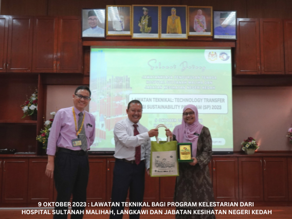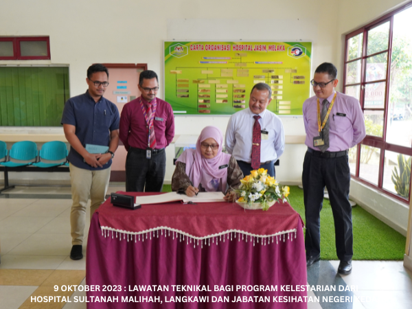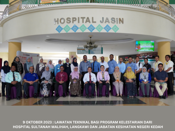 Hospital Jasin telah menerima lawatan teknikal bagi Program Kelestarian daripada Hospital Sultanah Malihah, Langkawi dan Jabatan Kesihatan Negeri Kedah pada 9 Oktober 2023. Lawatan ke Hospital Jasin yang telah mendapat pengiktirafan LEED Platinum adalah bagi memupuk kesedaran dan menerapkan ilmu berkenaan Green Building di kalangan kakitangan serta mempelajari dan melihat sistem-sistem kejuruteraan cekap tenaga dan mesra alam di Hospital Jasin.