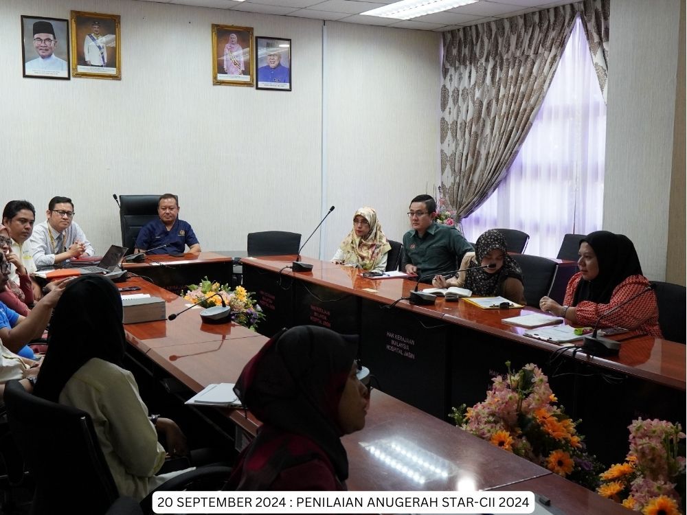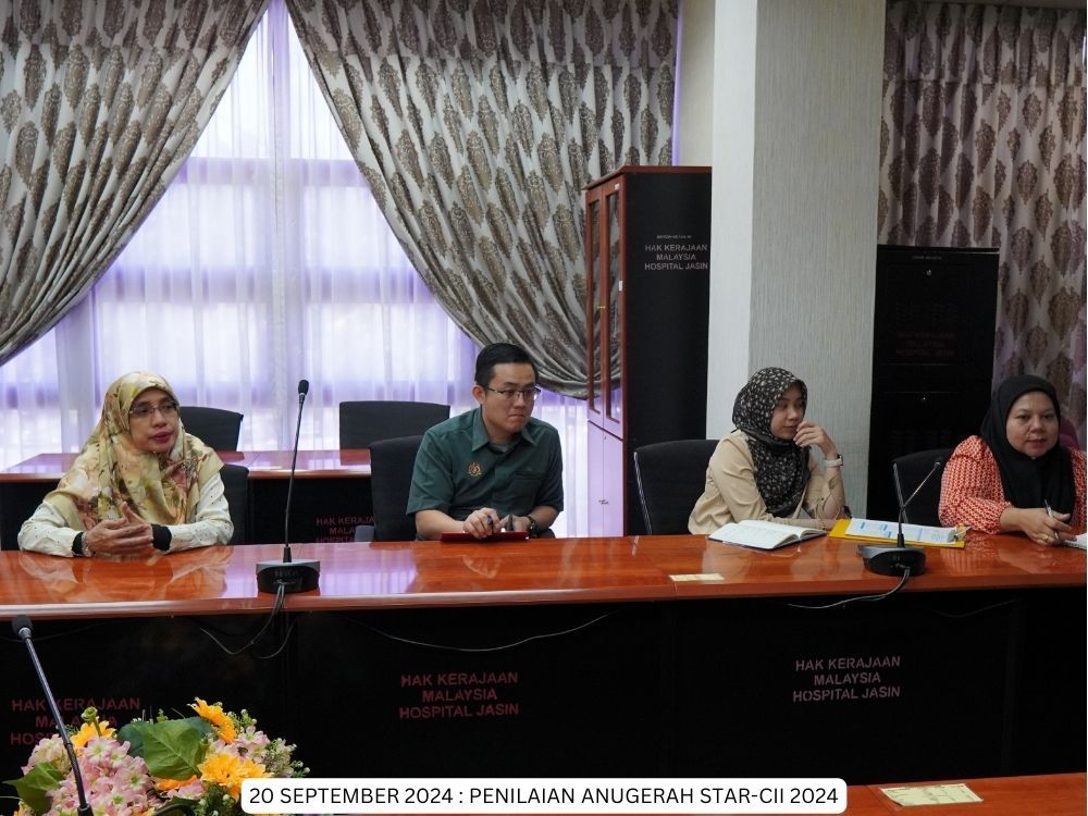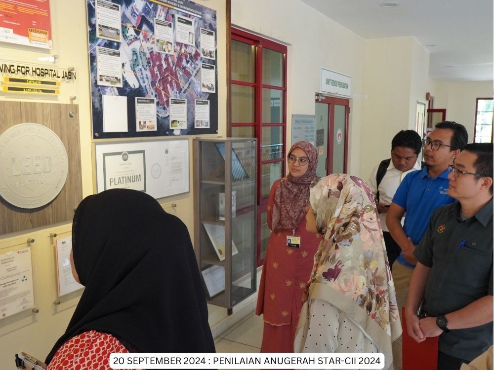 Tujuan : Penilaian bagi Anugerah Penarafan Bintang Sektor Komersial, Perindustrian dan Keinstitusian (STAR-CII) 2024 ke atas Hospital Jasin yang telah berjaya ke peringkat akhir.