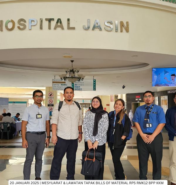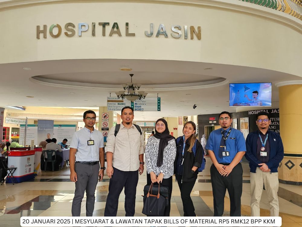 Hospital Jasin | 20 Januari 2025 - Pasukan dari Bahagian Perkembangan Perubatan KKM dan Unit Operasi & Pengurusan Rangkaian, Bahagian Pengurusan Maklumat KKM telah mengadakan mesyuarat dan lawatan bagi menilai infrastruktur rangkaian di Hospital Jasin. Selain itu, mereka turut membuat lawatan tapak di lokasi-lokasi klinikal bagi menilai lokasi yang mempunyai keperluan peralatan ICT untuk kegunaan sistem MPIS.