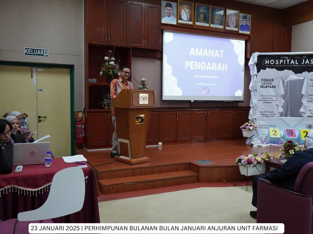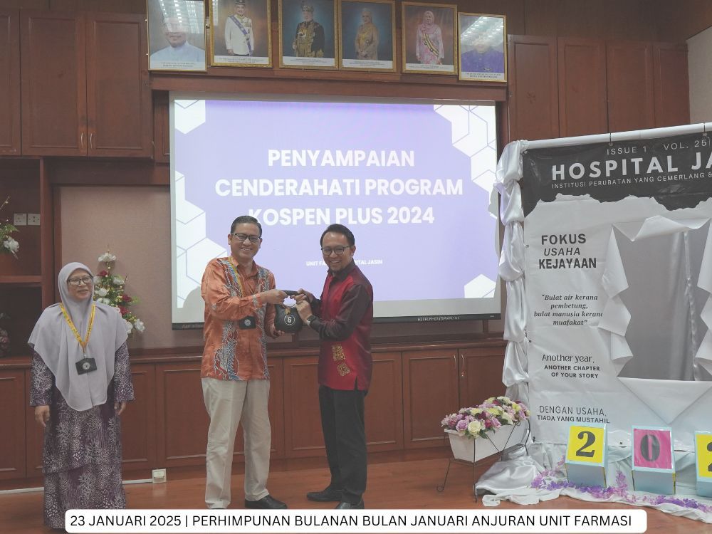 Hospital Jasin | 23 Januari 2025 - Perhimpunan Bulanan bagi Bulan Januari 2025 telah diadakan di Dewan Merak Kayangan Hospital Jasin. Penganjur perhimpunan adalah Unit Farmasi.