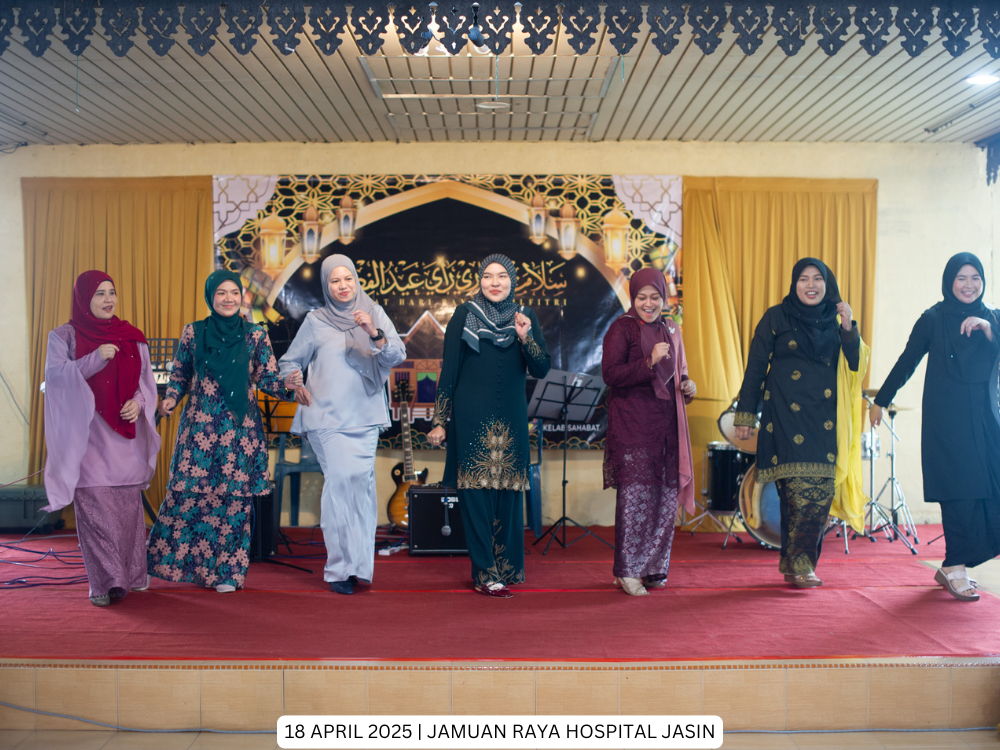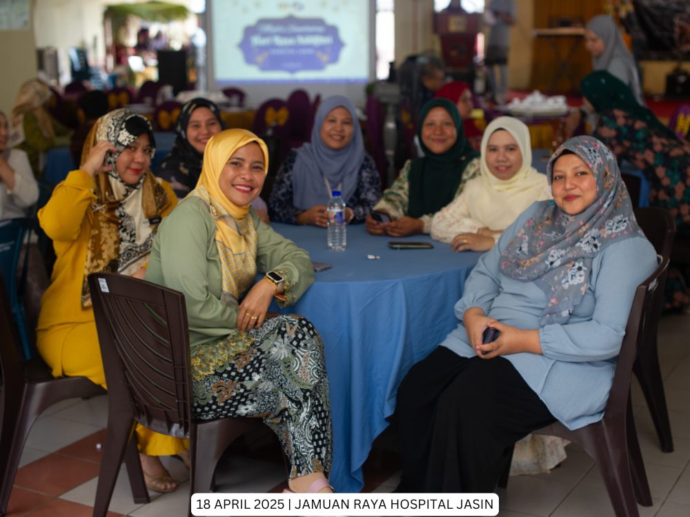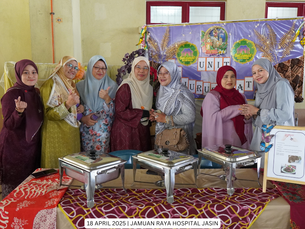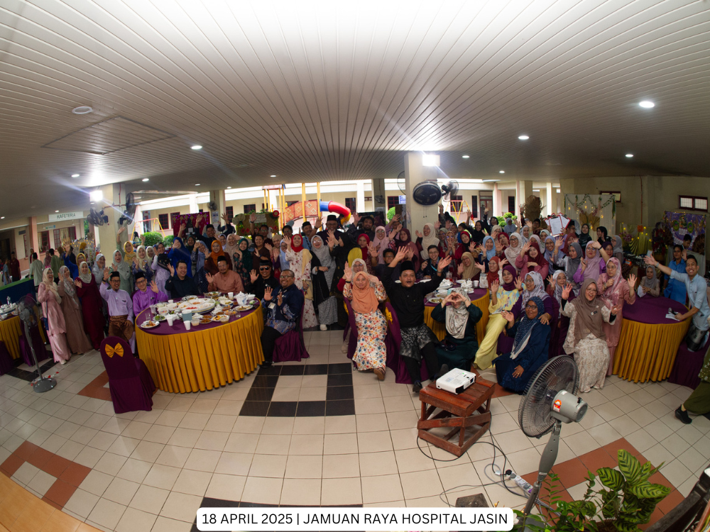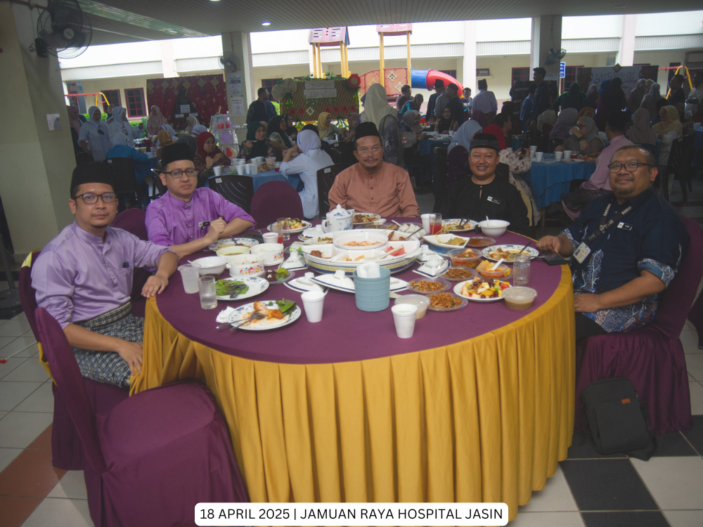 Hospital Jasin | 18 April 2025 - Sambutan Hari Raya tahun 2025 diserikan dengan jamuan hari raya peringkat Hospital Jasin. Pelbagai juadah hari raya disediakan oleh unit-unit melalui gerai masing-masing.