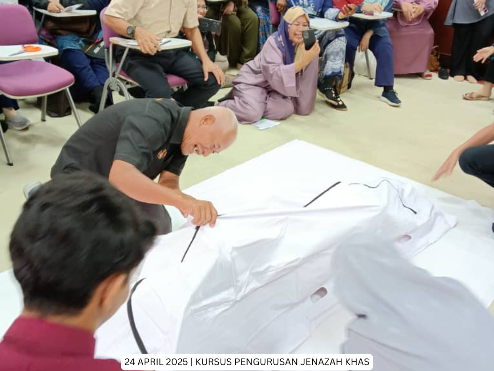 Hospital Jasin | 24.04.2025 – Unit Perubatan Forensik Hospital Jasin telah menganjurkan satu program istimewa bertajuk Kursus Pengurusan Jenazah Khas yang telah berjaya menghimpunkan 56 orang peserta dari pelbagai latar belakang — merangkumi 21 staf hospital dan 35 pengendali jenazah luar dari kalangan Imam, Bilal, Noja serta sukarelawan pengurusan jenazah di sekitar daerah Jasin.