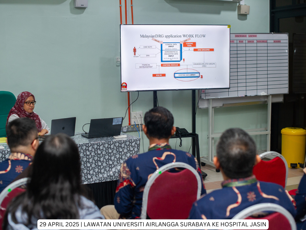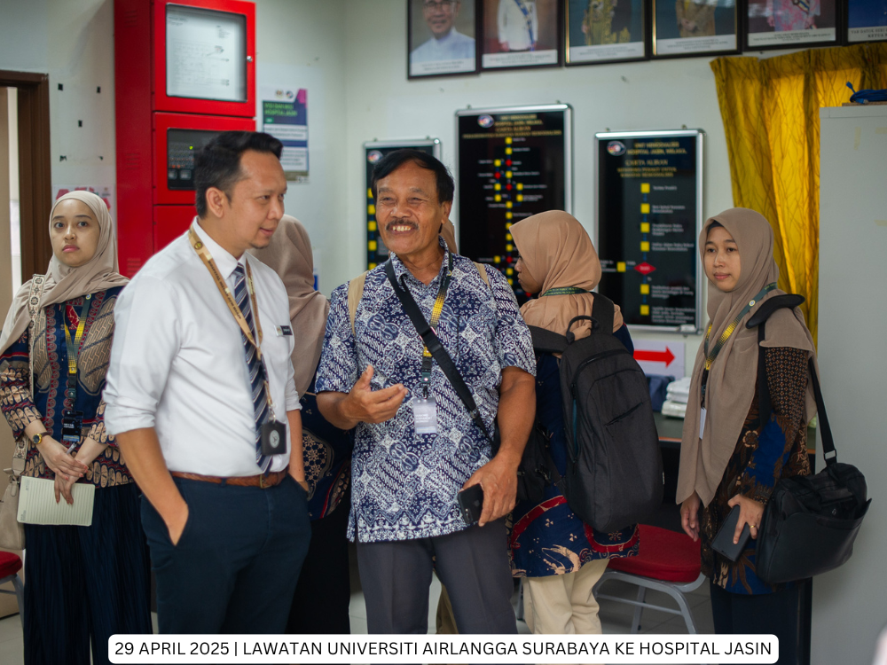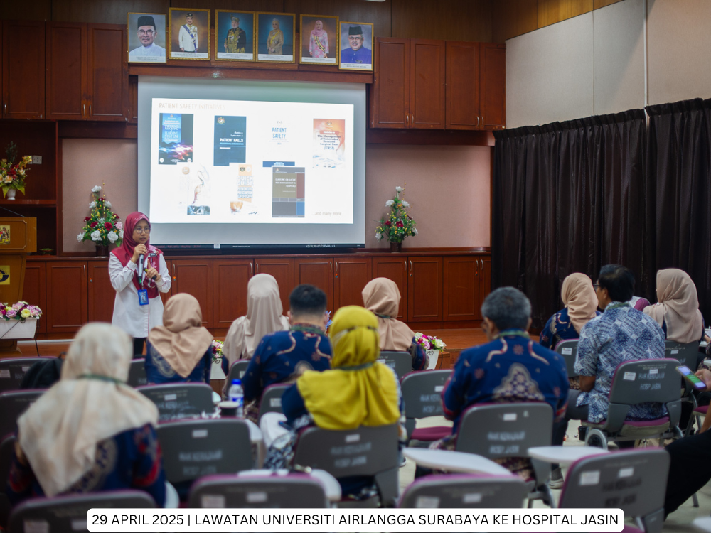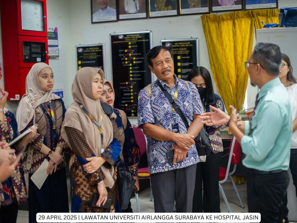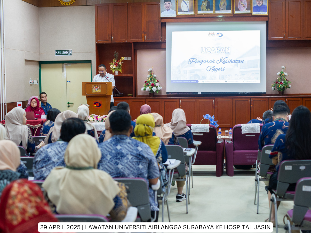 Hospital Jasin | 29 April 2025 - Hospital Jasin telah menerima kunjungan dari delegasi Fakultas Kesehatan Masyarakat, Universitas Airlangga, Indonesia yang bertujuan untuk membina jaringan kerjasama serantau di peringkat antarabangsa di antara Hospital Kluster Melaka dan Universitas Airlangga, Indonesia.