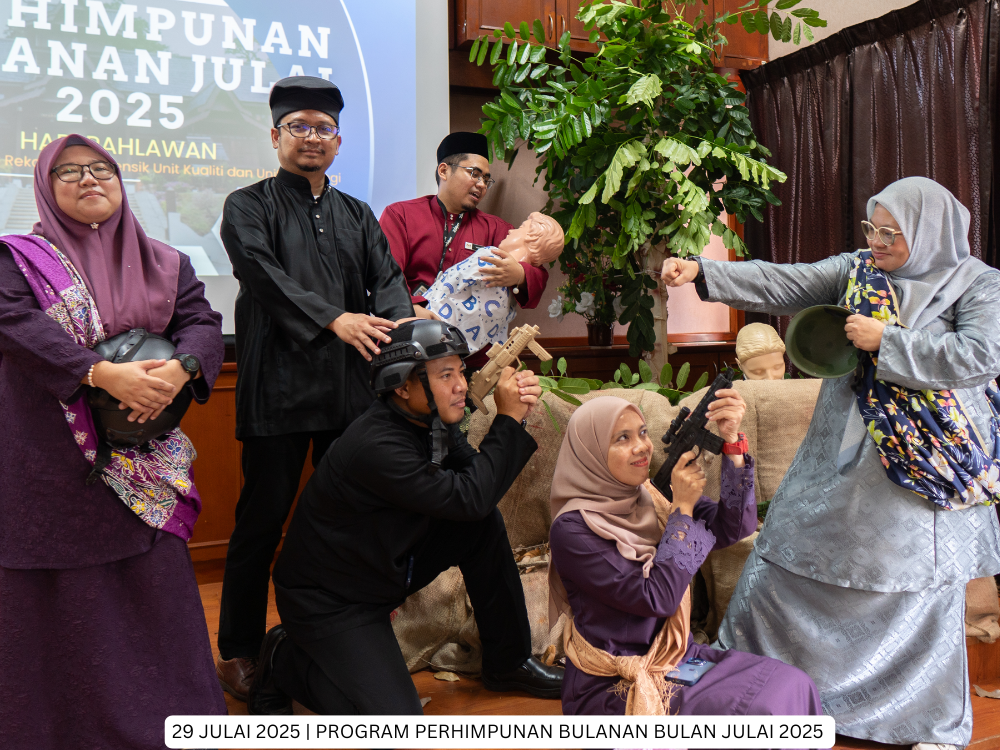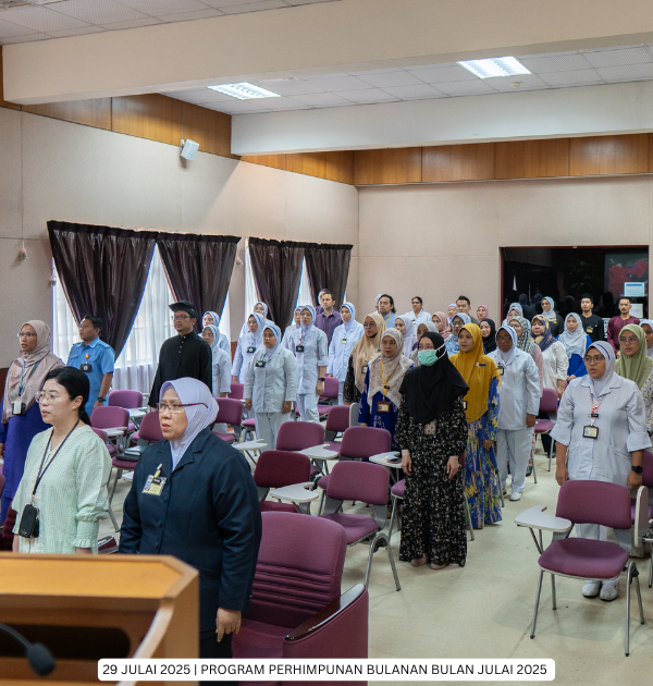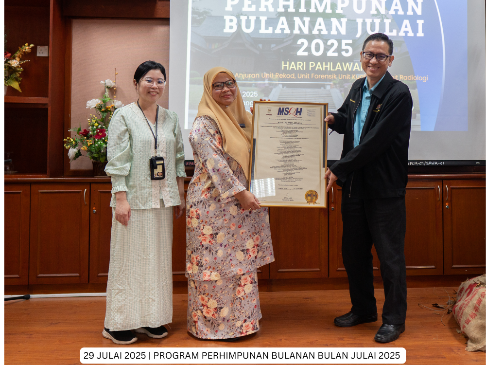 Hospital Jasin | 29 Julai 2025 - Program Perhimpunan Bulanan Hospital Jasin bagi bulan Julai 2025 telah dianjurkan bersama oleh Unit Rekod Perubatan, Unit Forensik, Unit Kualiti dan Unit Radiologi dengan mengangkat tema "Hari Pahlawan".