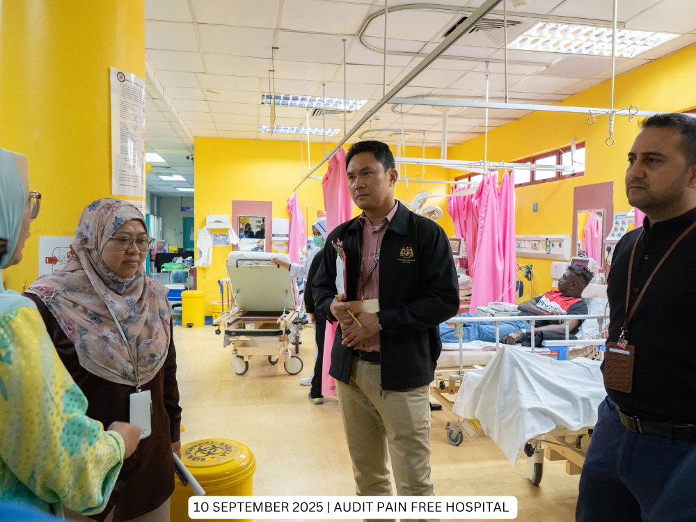 Hospital Jasin | 10 September 2025 - Hospital Bebas Kesakitan (Pain Free Hospital ) ialah satu inisiatif KKM untuk mengurus kesakitan pesakit secara holistik di mana kesakitan diiktiraf sebagai tanda vital kelima (selain suhu, nadi, tekanan darah dan pernafasan). Ia bertujuan untuk memastikan setiap pesakit mendapat rawatan melegakan kesakitan yang mencukupi dan berkesan selain meningkatkan kepuasan pelanggan dan memenuhi piawaian penjagaan antarabangsa.